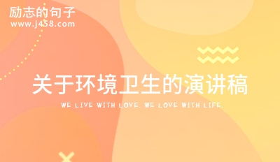 为了保证演讲的效果。也该根据演讲的目的和想讲述的内容去准备演讲稿了,演讲可以促进我们提升个人能力,有哪些写好主题演讲稿的技巧呢?考虑到你的需求,励志的句子小编特意整理了“关于环境卫生的演讲稿”,供大家参考借鉴,希望可以帮助到有需要的朋友。