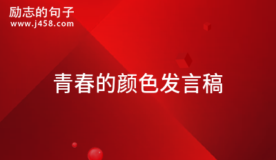 励志的句子编辑为大家精选的这篇“青春的颜色发言稿”文章内容详实讲解清晰。乾坤未定,你我皆是黑马,我们每个人都会迎接演讲的挑战。演讲稿的准备可以让你更好地表达自己的思想和感悟,从演讲的内容和性质划分,可分为政治演讲稿、学术演讲稿等。感谢你阅读希望信息对你有所帮助!此外,关于范文大全,您还可以浏览司机个人总结1000字推荐十一篇。